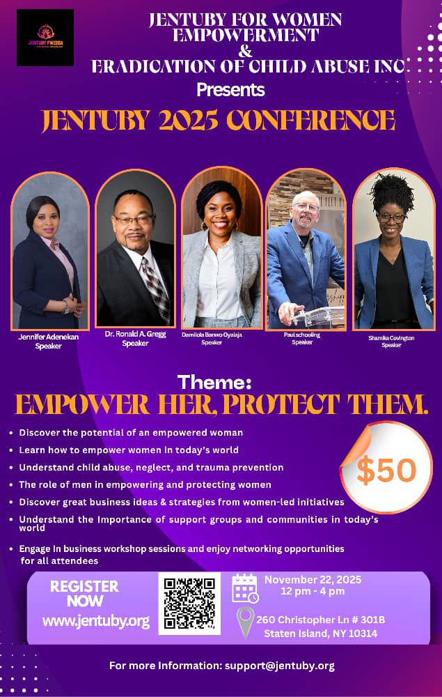 The Jentuby for Women Empowerment & Eradication of Child Abuse Inc. proudly presents the Jentuby 2025 Conference — a life-changing event dedicated to empowering women and protecting children.